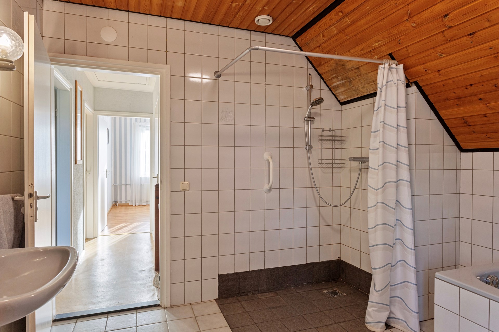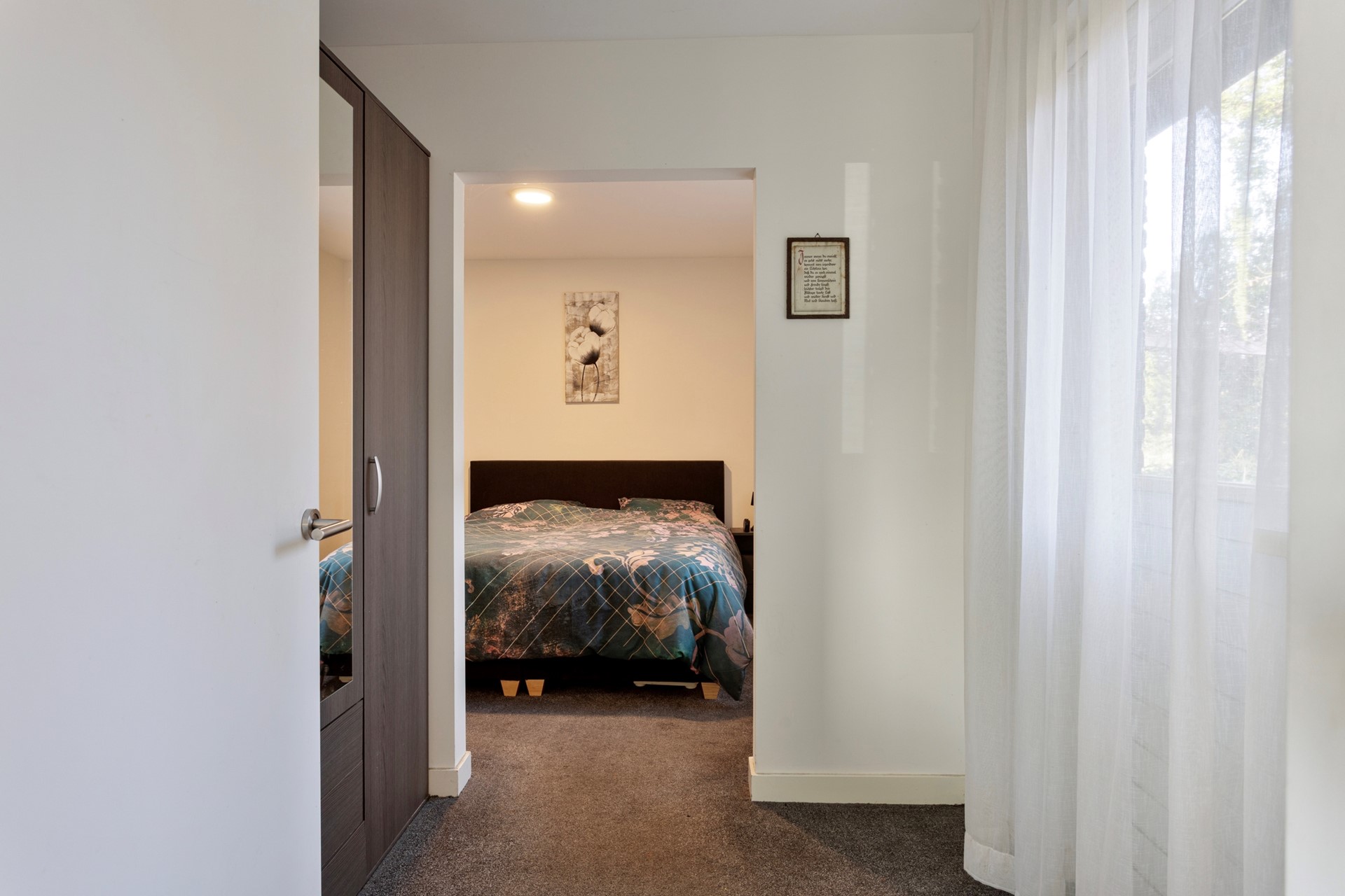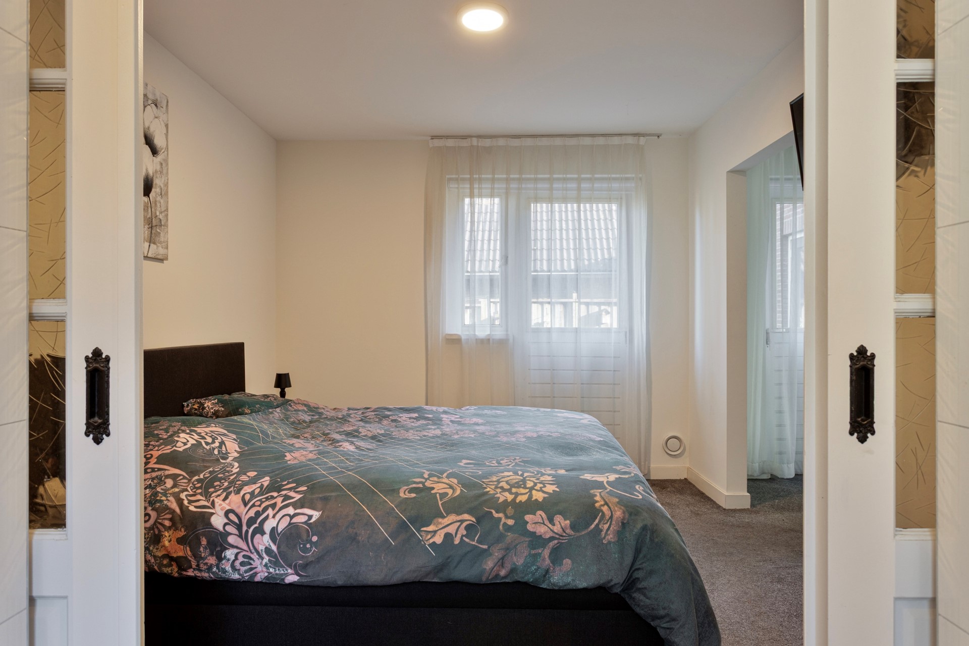 Via de vaste trap bereik je de overloop op de eerste verdieping. Vanaf hier is er toegang tot drie comfortabele slaapkamers, allen voorzien van vaste kasten. Daarnaast bevindt zich op deze verdieping een ruime badkamer, compleet en praktisch ingericht. Een fijne verdieping met volop ruimte voor het hele gezin.