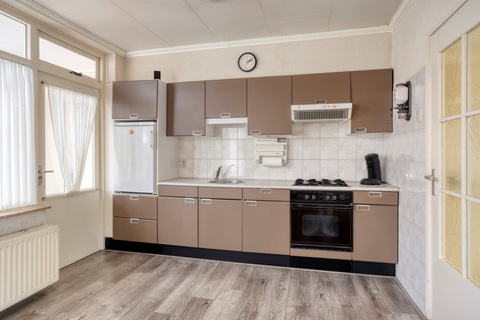 De woning biedt mogelijkheden voor modernisering maar is netjes onderhouden. Het beschikt over een sfeervolle doorzonwoonkamer, keuken aan de achterzijde en een praktische bijkeuken. Op de eerste verdieping vind je drie slaapkamers en een badkamer met douche, toilet en wastafel. De royale achtertuin is recent opnieuw aangelegd, gunstig gesitueerd en is dankzij de ruime opzet perfect voor zonliefhebbers.