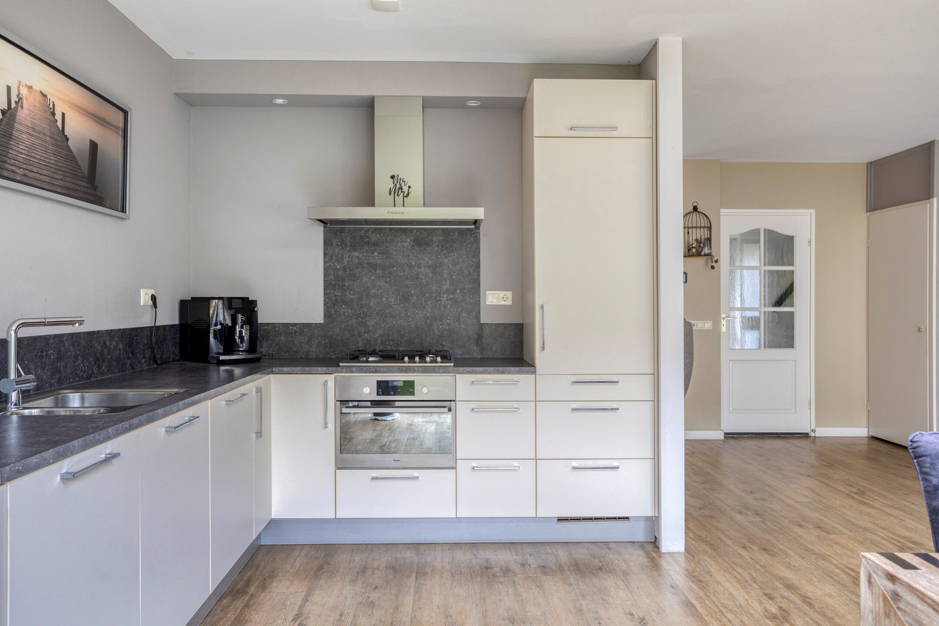 Entree; modern toilet mét fonteintje; meterkast; trapopgang naar de eerste verdieping en het woongedeelte. De woonkamer aan de voorzijde is sfeervol mede door de gashaard en de gave PVC vloer. Aan de achterzijde is de woning uitgebouwd waardoor er een grote open ruimte is gecreëerd. De keuken is v.v. een 4-pits gasfornuis mét afzuigkap, een combi-oven, koelkast en een vaatwasser. Doordat er een glazenschuifpui én een lichtstraat in de uitbouw is gerealiseerd is deze ruimte het hart van de woning. Tevens is er vanuit de keuken toegang tot de bijkeuken.