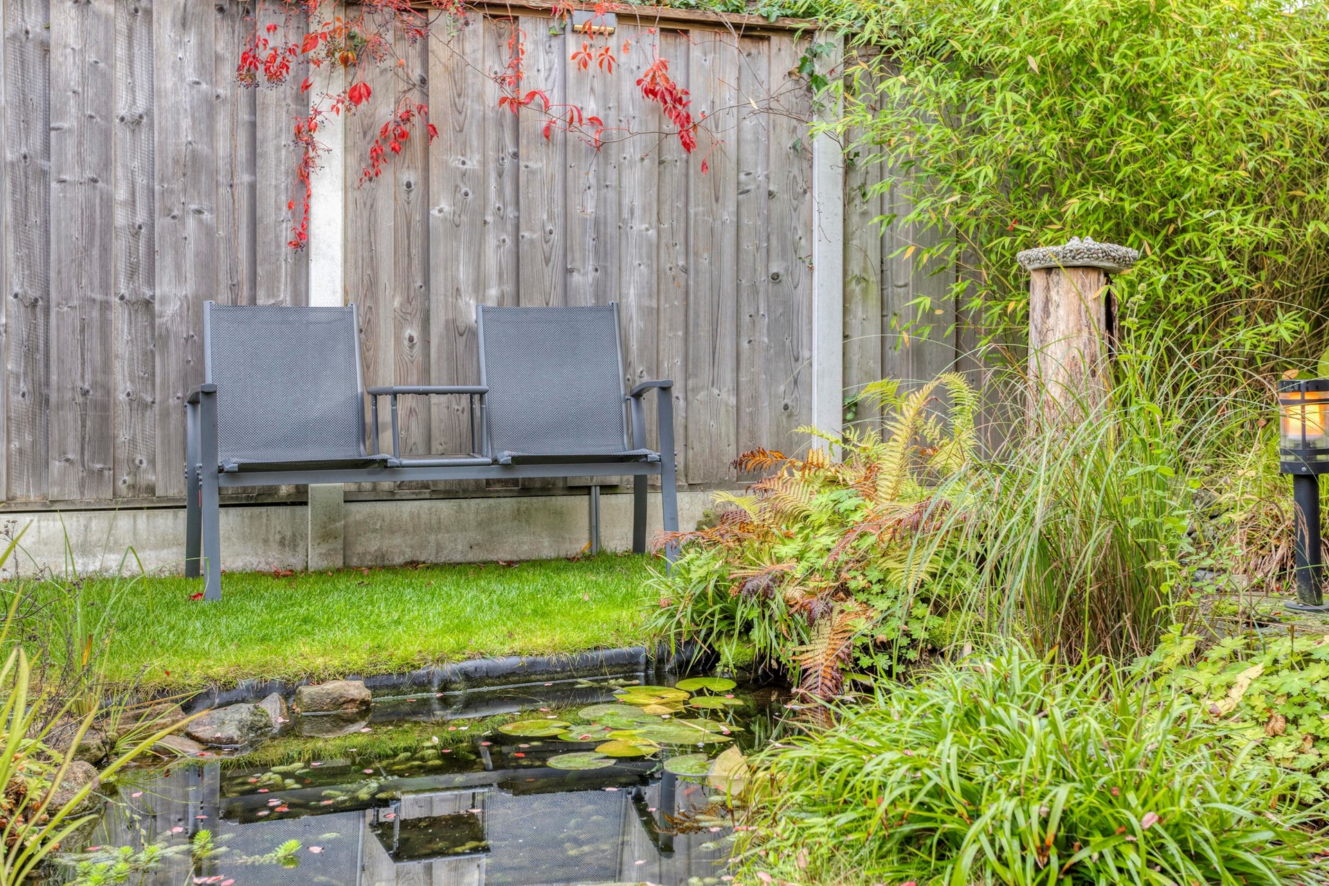 Gelegen op het Oosten ligt deze nette en groene achtertuin inclusief gave overkapping. De overkapping biedt voldoende ruimte waardoor je er heerlijk kunt genieten met vrienden of familie. De berging welke vanuit de overkapping alsook vanuit de bijkeuken te bereiken is ideaal voor het opbergen van diversen. Het perceel waarop de woning is gelegen is extra breed waardoor je over een extra breed oprit beschikt als ook een extra berging naast de stenen garage!