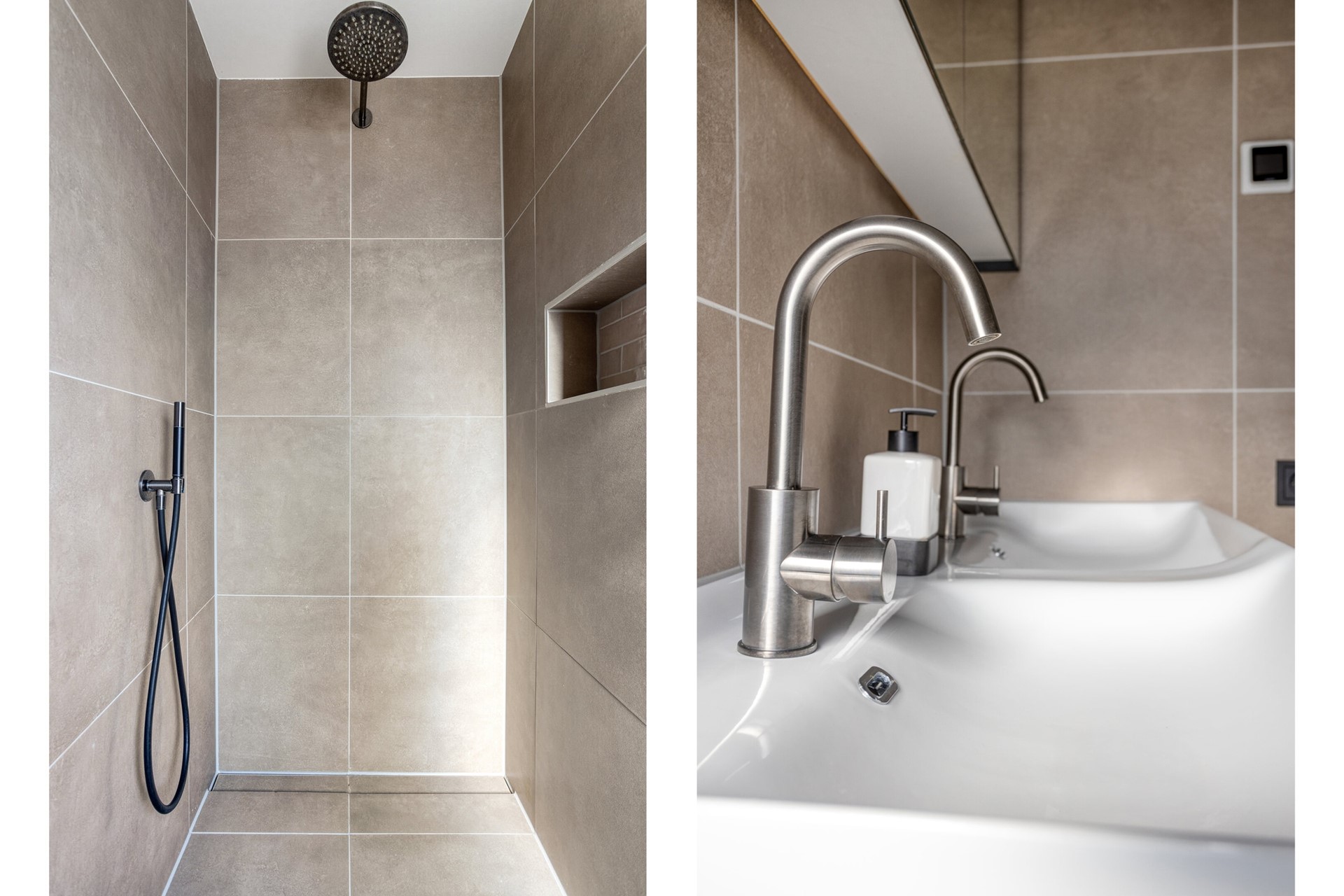 Overloop, v.v. een Samsung airconditioning (2022, eigendom), welke toegang biedt tot drie ruime slaapkamers en een gave badkamer welke in 2022 is vernieuwd. De badkamer beschikt over een ruime inloopdouche, dubbele wastafel, een toilet én een designradiator. De tweede verdieping is middels vaste trap bereikbaar.