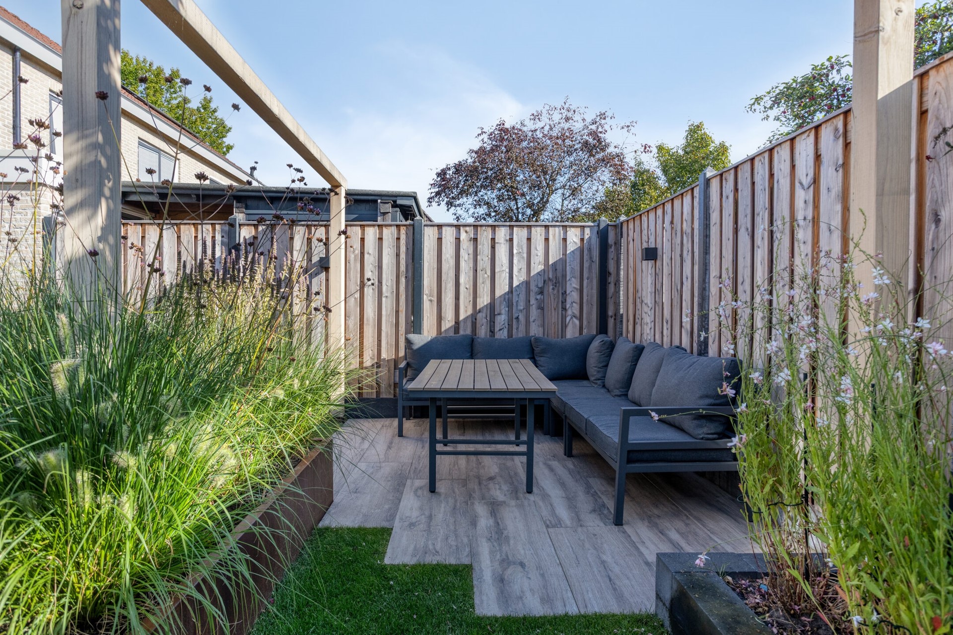 De fraaie achtertuin is in 2024 volledig aangepakt en beschikt over een sfeervolle overkapping welke toegankelijk is via de glazen schuifpui in de eetkamer. Ook is er een verhard terras achterin de tuin waar je heerlijk kunt genieten van het buitenzijn. Daarnaast is er een handige houten berging en is er rechtstreeks toegang tot de garage, van waaruit de oprit + carport weer te bereiken is.