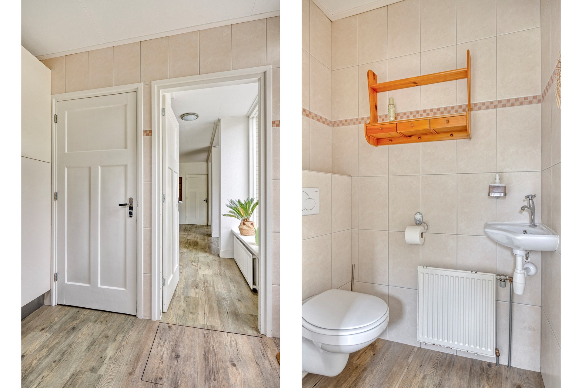 Entree; toegang tot de eerste verdieping en de keuken. De woonkamer en het eetgedeelte staat direct in verbinding met de gave open leefkeuken waardoor er fijne interactie ontstaat tijdens het koken en er een heerlijk gevoel van ruimte en gezelligheid heerst. De gehele keuken beschikt over Siemens inbouwapparatuur, zoals een koelkast, combi oven/magnetron, inductiekookplaat mét inbouw afzuiging, een vaatwasser en een Quooker. Aansluitend aan de keuken bevindt zich de bijkeuken, voorzien van de witgoedaansluitingen, een wasbak en het toilet. Tevens is er middels de glazen schuifpui in de woonkamer alsook via de bijkeuken toegang tot de achtertuin.