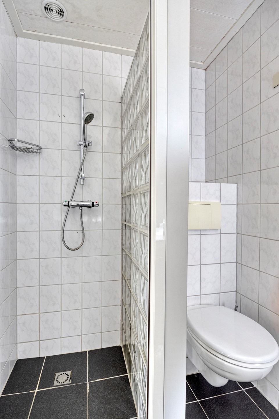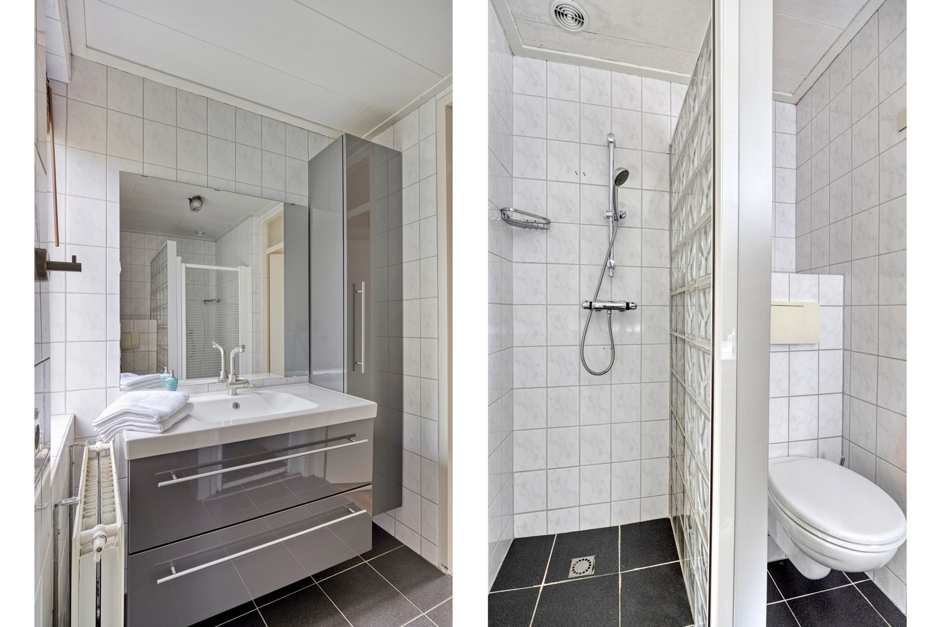 De overloop biedt toegang tot drie slaapkamers en de badkamer. Alle slaapkamers zijn voorzien van grote raampartijen, wat zorgt voor veel natuurlijk daglicht en een aangename sfeer. Twee van de slaapkamers beschikken bovendien over vaste kasten, wat zorgt voor extra bergruimte. De badkamer is uitgerust met een inloopdouche, toilet en een modern wastafelmeubel.