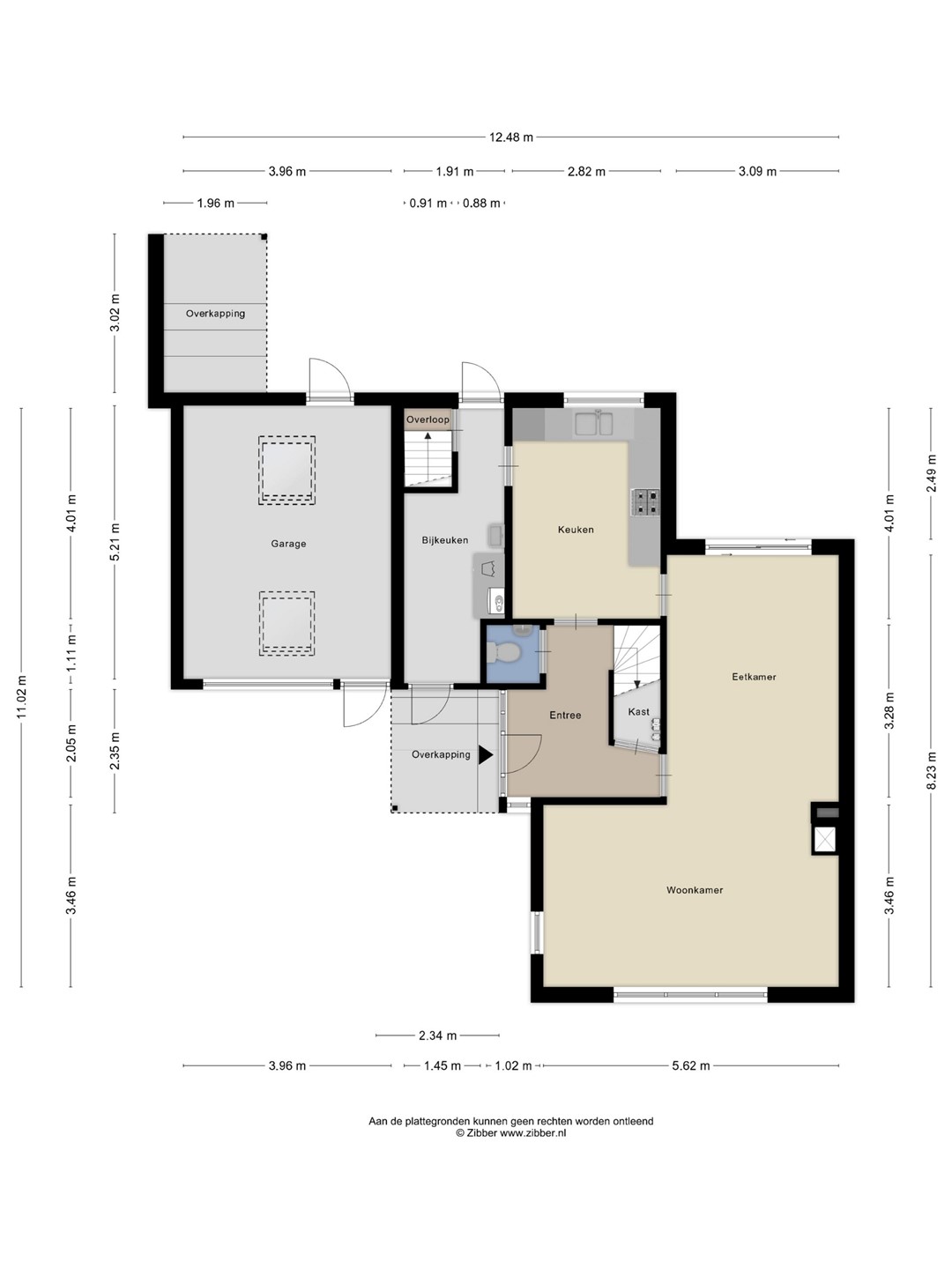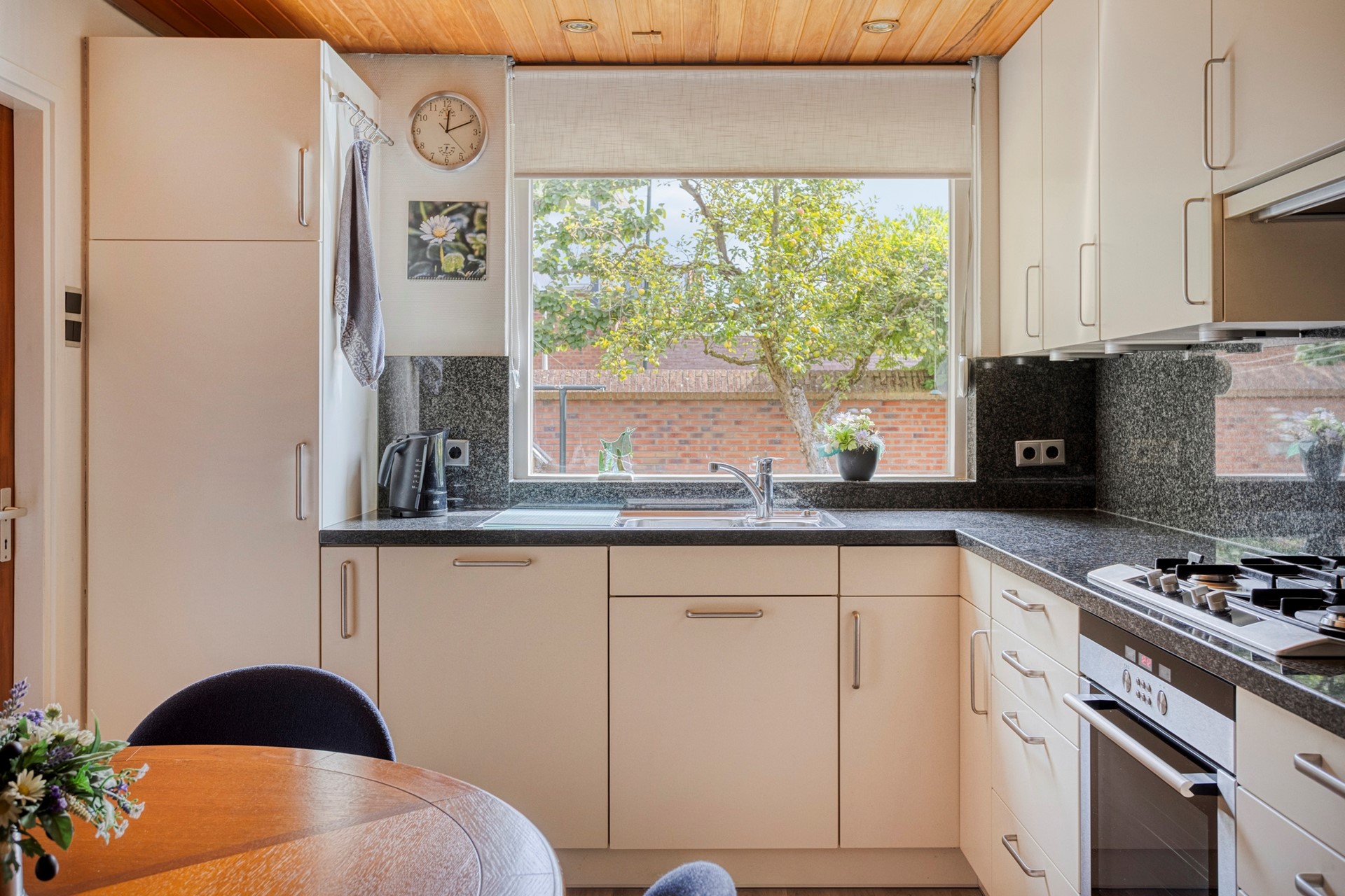 Entree; toilet met fonteintje; meterkast; trapopgang naar de verdieping, toegang tot de woonkamer én keuken. De aan de voorzijde gelegen woonkamer is licht en sfeervol, mede door de openhaard en grote raampartijen aan de voor- en achterzijde. Door het royale formaat is er ruimte voor zowel de zit- als eethoek en via de glazen schuifpui heb je direct toegang tot de achtertuin. De keuken is praktisch ingericht en beschikt over o.a. een koelkast, vaatwasser, gas kookplaat met afzuigkap en een elektrische oven. Grenzend aan de keuken bevindt zich de bijkeuken welke is v.v. van een natuurstenen werkblad, de Remeha CV ketel (2005, eigendom) en toegang biedt tot de ruime kelder welke ideaal is als opbergruimte of zelfs als werkplek.