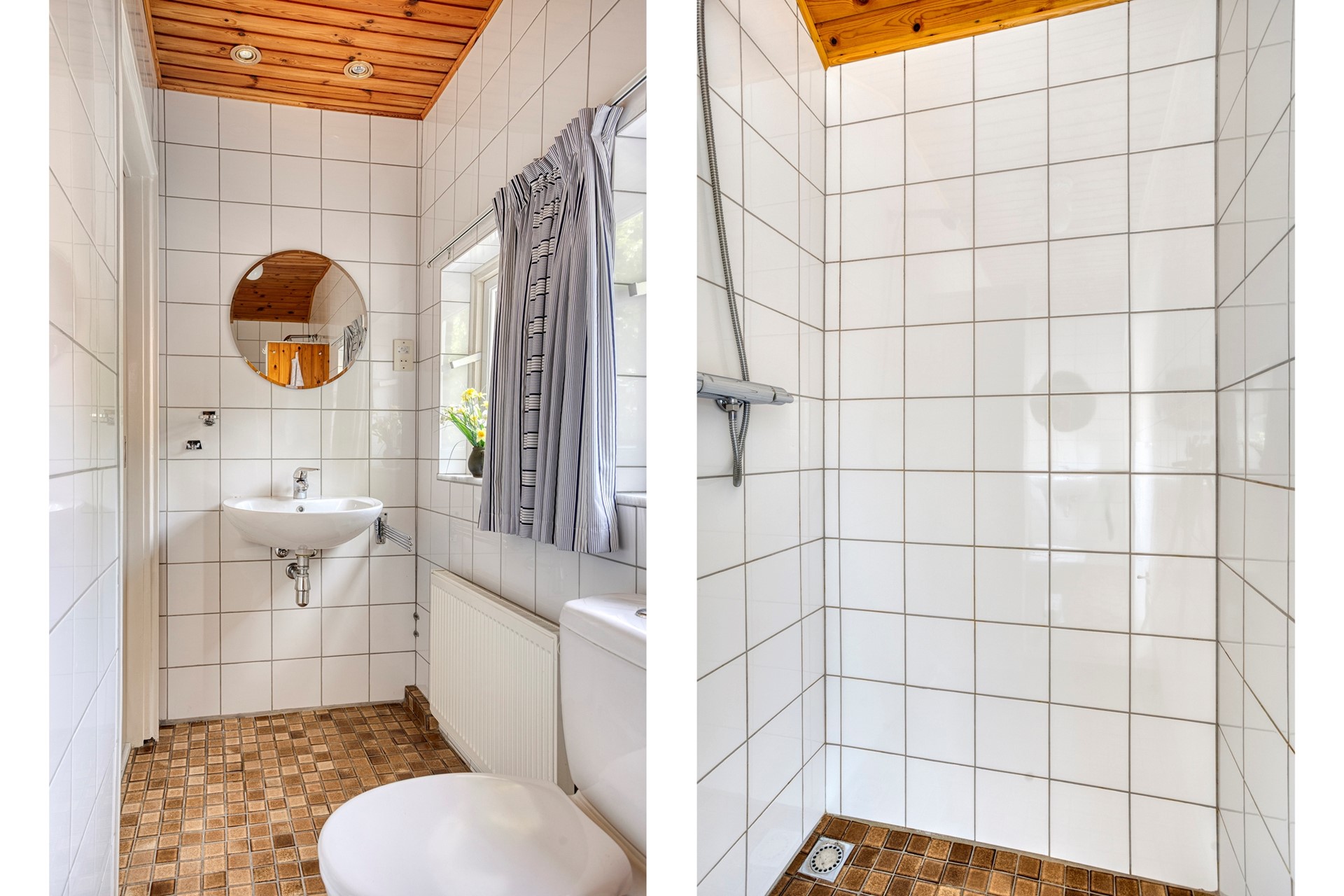 De overloop biedt toegang tot drie slaapkamers, die elk beschikken over vaste kasten én meerdere raampartijen. De badkamer is compact maar praktisch ingericht met een douche, toilet en een wastafel.