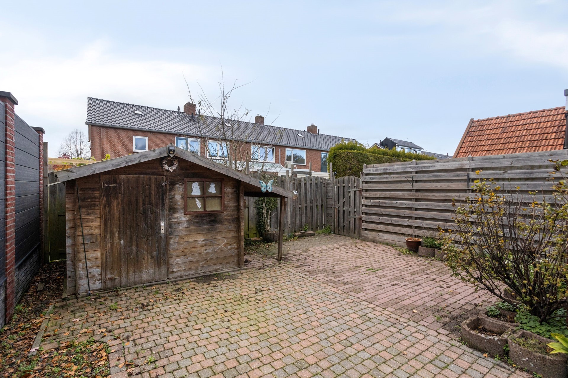 Achtertuin gelegen op het Westen waar je heerlijk kunt genieten van het buiten zijn! Tevens beschikt de tuin over een houten opbergschuurtje én een vrijstaande stenen berging die voorziet in meerdere stopcontacten en welke zeer handig is als bijvoorbeeld werkplaats. Daarnaast is de tuin per achterom te bereiken en biedt mede gezien het riante oppervlakte diverse mogelijkheden!